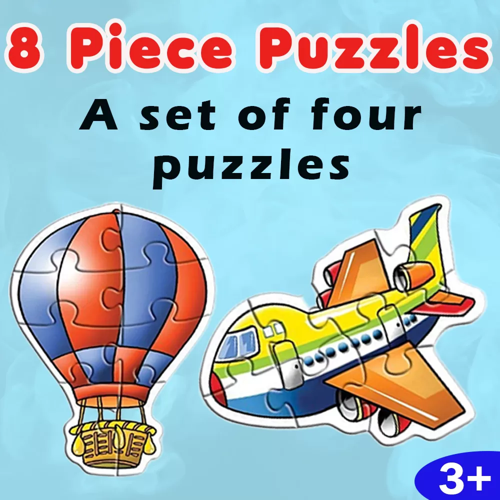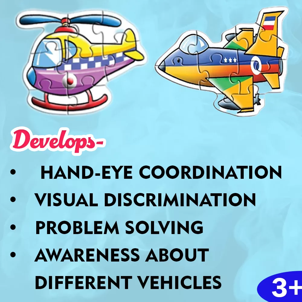 • 4 puzzles (Airplane, Helicopter, Hot Air Balloon, Jet Fighter Plane)