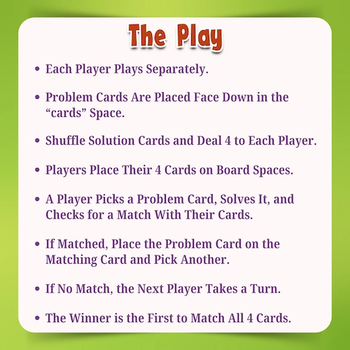 • 120 Game Cards (Addition, Subtraction, Multiplication, Division)