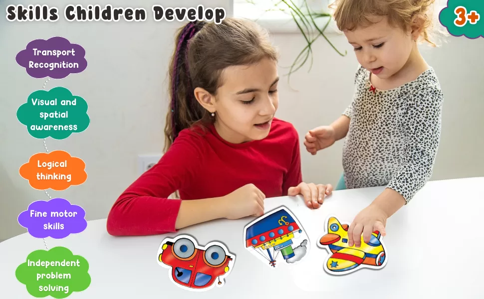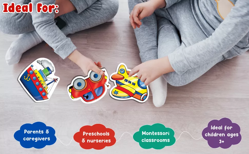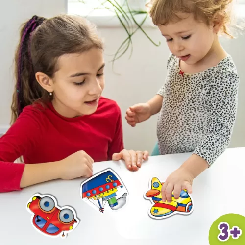 pieces for children aged 3 and up. Each vehicle is shaped to its outline,