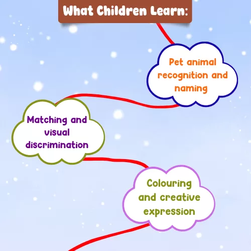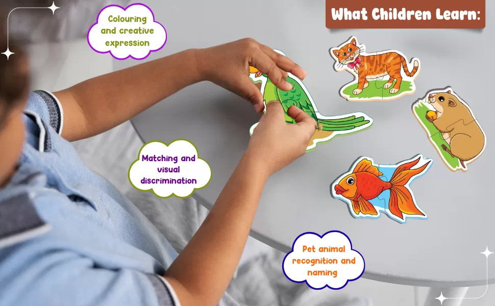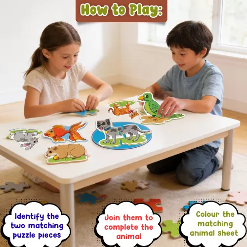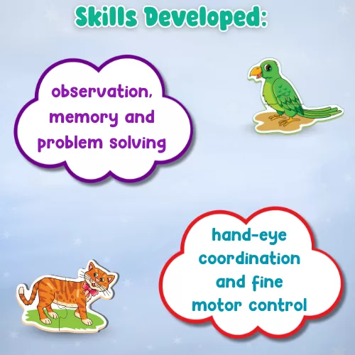 ‘First Puzzles-Pet Animals’ is a puzzle game that enhances problem solving and observation skills in children.