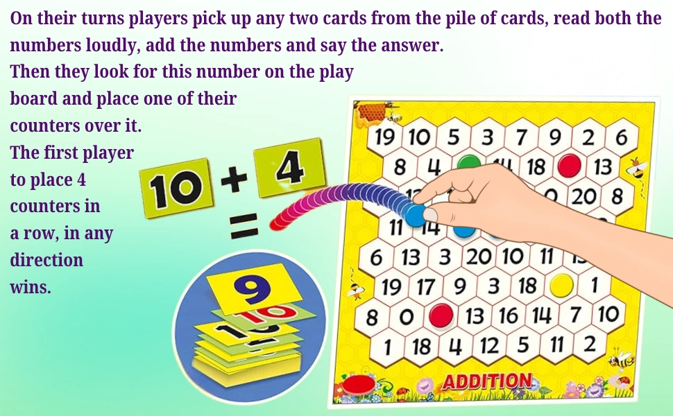 By combining numbers and finding answers on the play board,