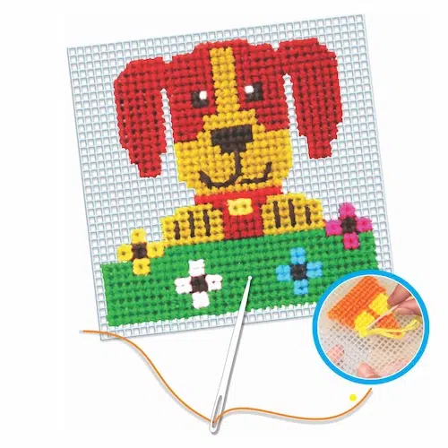 ‘Cross Stitch – Dog’ is a stitching kit that helps children