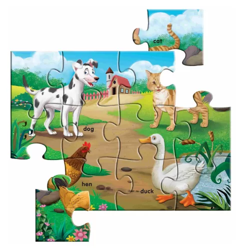 Montessori 5-in-1 domestic animal puzzle for kids age 3+. Progressive puzzles improve focus, fine motor skills and problem-solving through play. Ideal preschool educational toy for home and classroom learning.