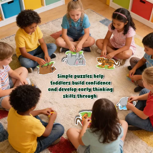 ‘First Puzzles-Jungle Animals’ is a puzzle game that enhances problem solving and observation skills in children.