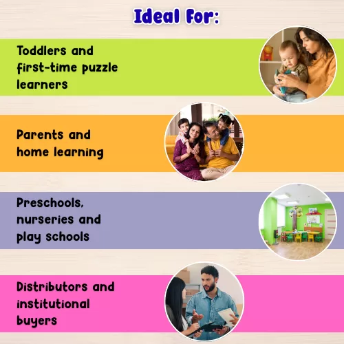 simple, easy-to-handle two-piece puzzles that are ideal for first-time learners.