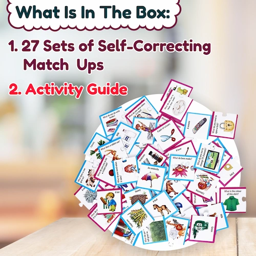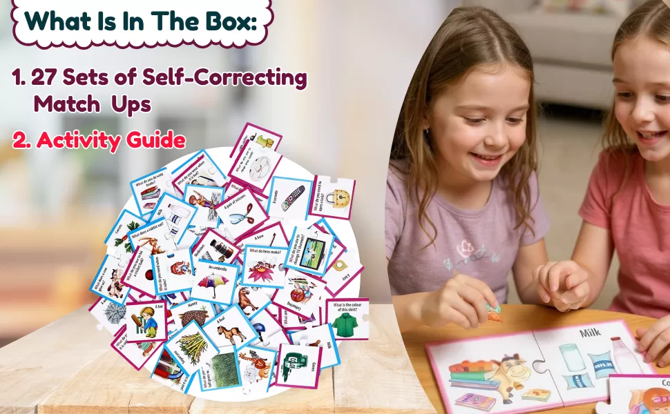 Each set includes two-piece puzzle cards where children match