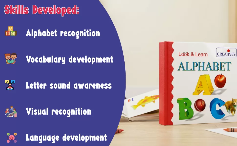 Creative’s Look & Learn Alphabet introduces young learners to letters and familiar objects through bright illustrations and simple word associations. Children explore the alphabet while building vocabulary and early reading skills. Designed for engaging screen‑free learning, this educational book supports early childhood learning at home or in classrooms.