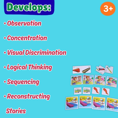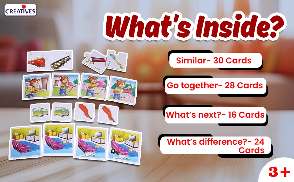 The 14 sets of cards will make child to discover how things go together in