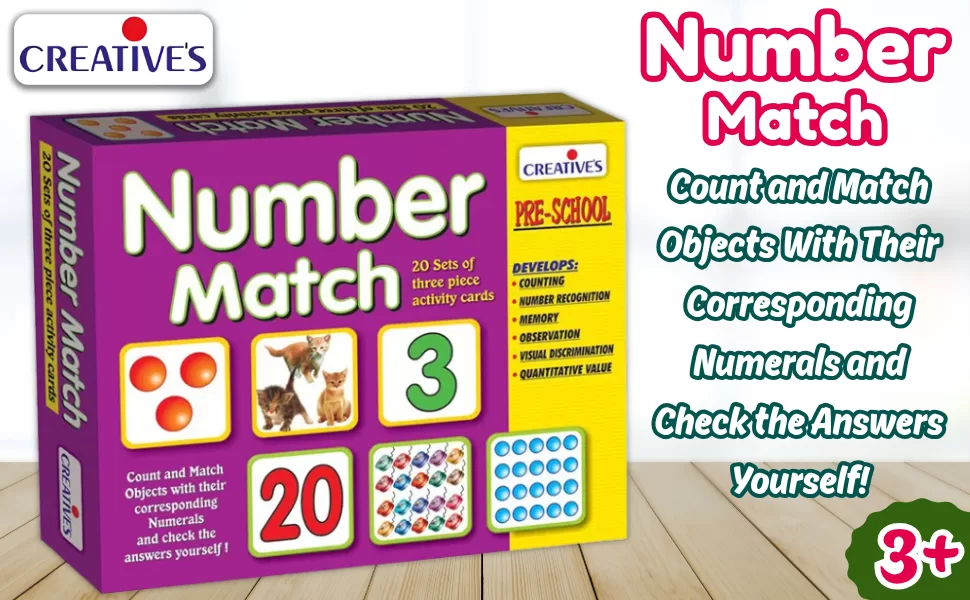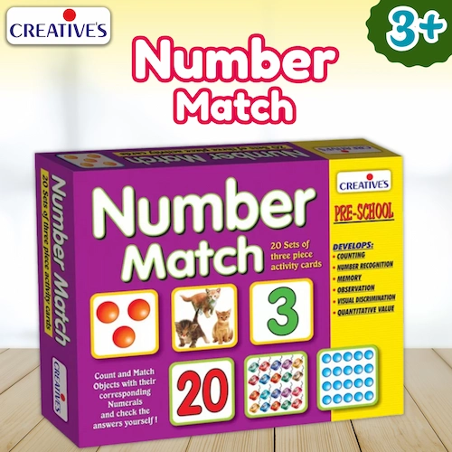 ‘Number Match’ is a game of different matching activities to teach children to recognise and count numbers. The game is suitable for the children of the 3 years and above.