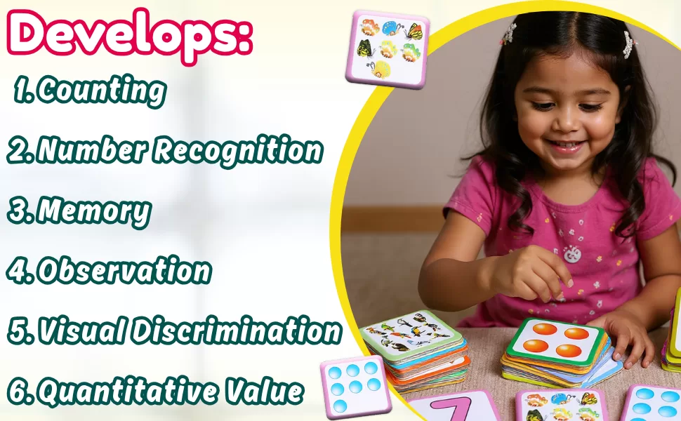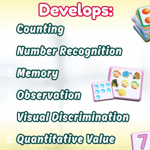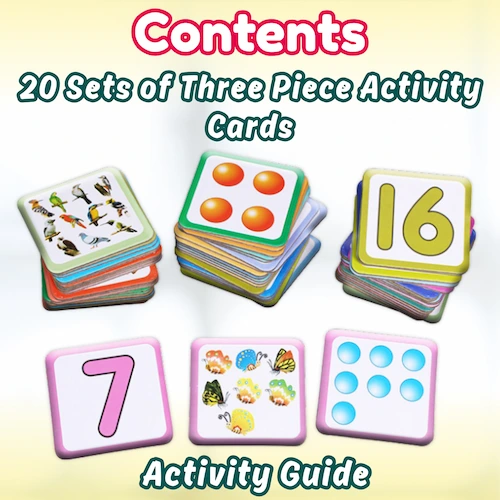Number Match Counting Game for Kids contains 60 large cards which can be used to play
