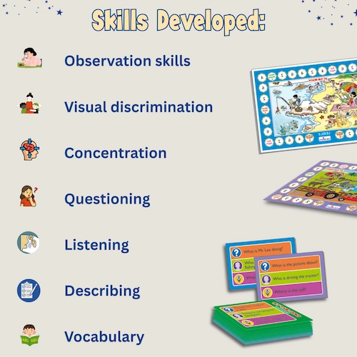 Observation, Listening, Vocabulary Building, Questioning Skills