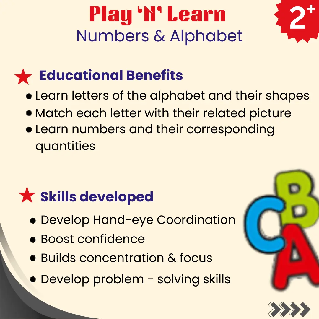 puzzle boards that introduces your child to the ‘Alphabet’ and ‘Numbers’.