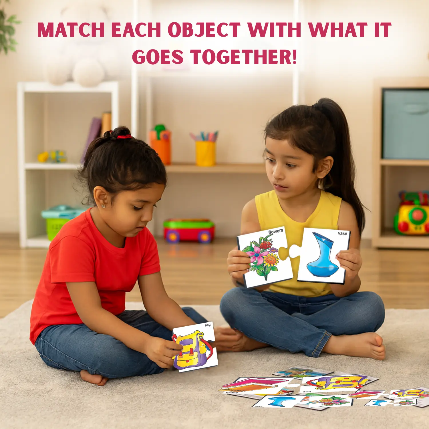 ‘Things That Go Together’ is a fun, challenging game for kids 3+ that boosts memory, visual recall, and teaches object pairing from daily life.