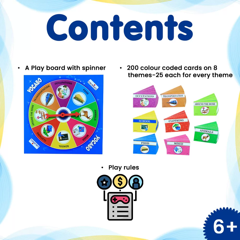 "Vocabo Language Learning Board Game" is an educative, motivating