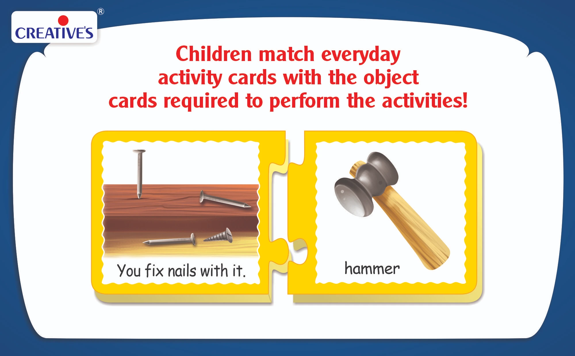each activity card is matched with the object needed to perform it.