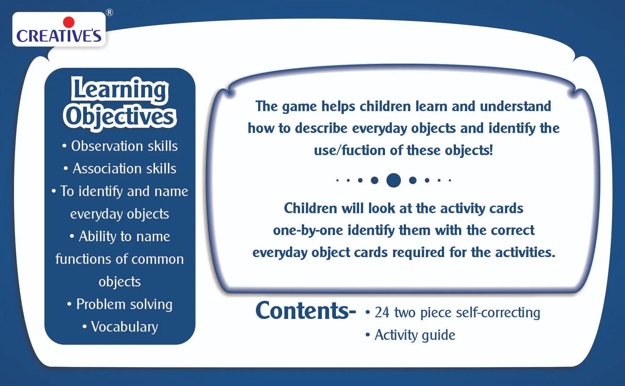 The game includes 24 sets of two-piece self-correcting puzzles, where
