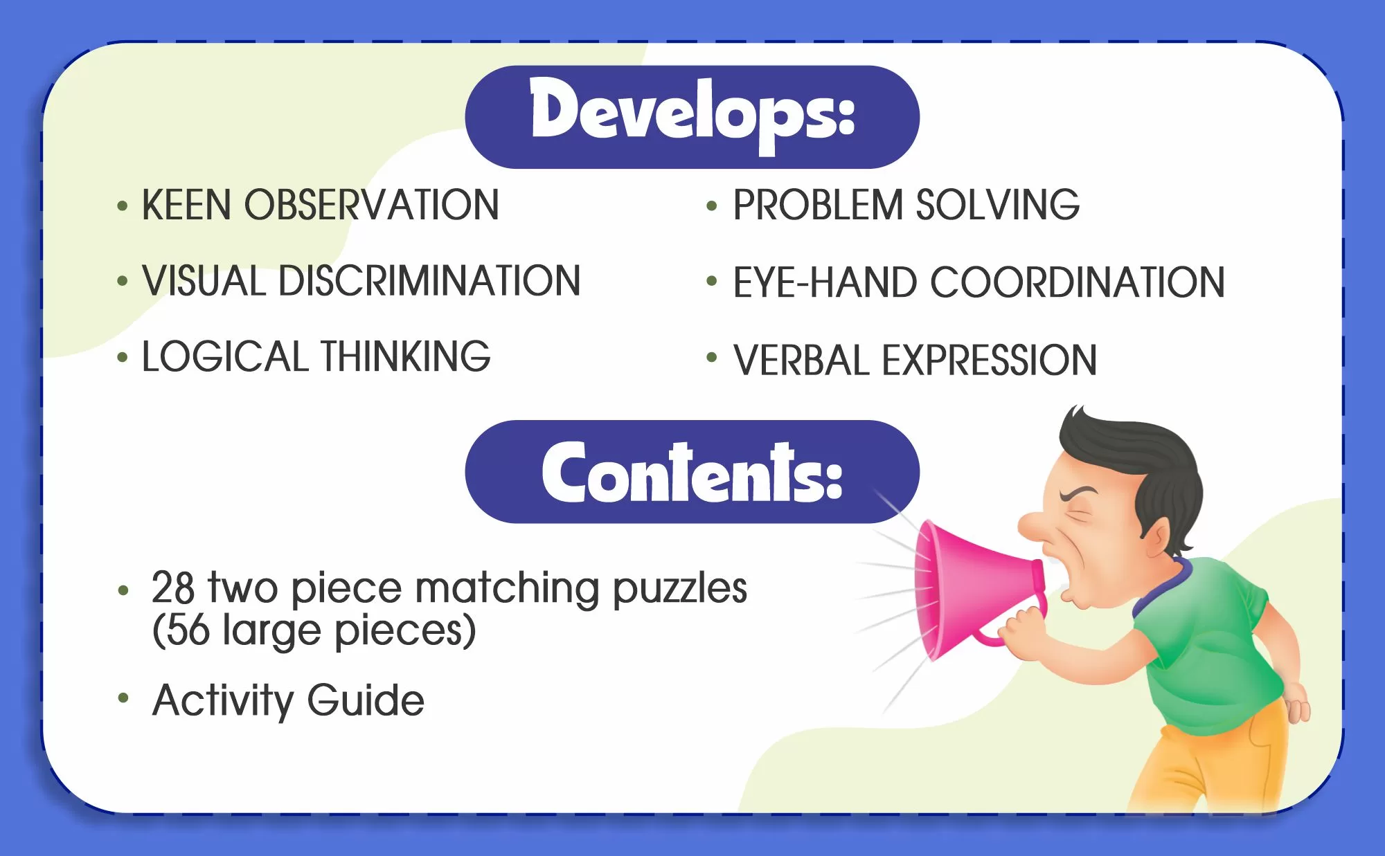 As children match the puzzles, they naturally develop vocabulary,